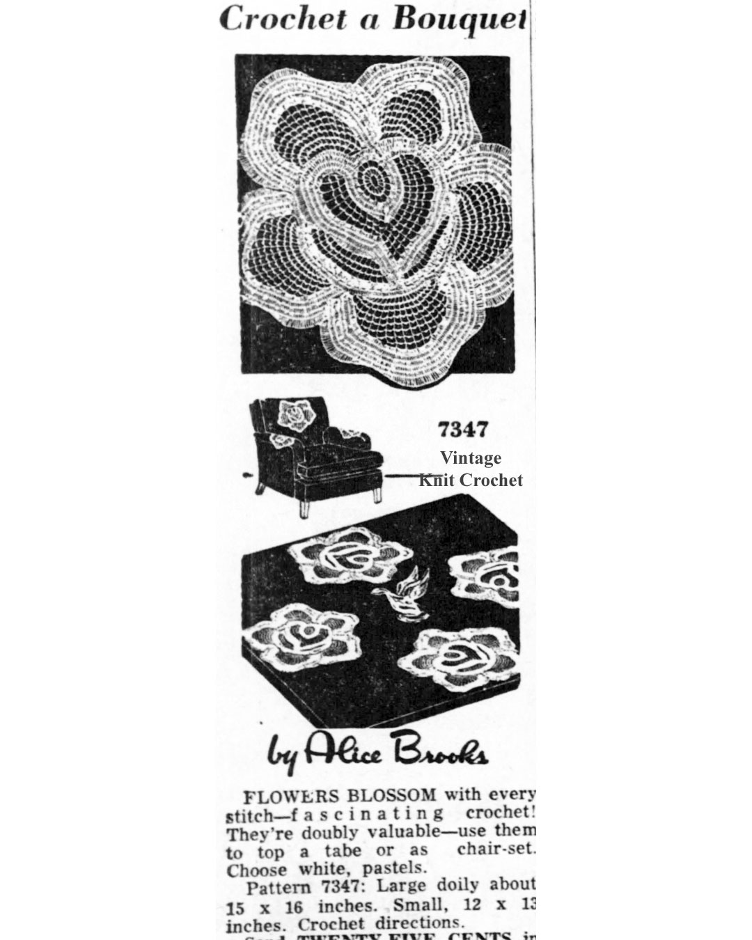 Crochet Rose Shape Mats Pattern Mail Order Design 7347 Newspaper Advertisement